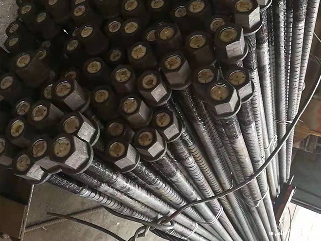 左旋锚杆:全称等强螺纹钢式树脂锚杆,由右(或左)旋精轧螺纹钢制成,螺纹连续,全长可上螺母。与锚盘螺母配合使用与巷道支护。
